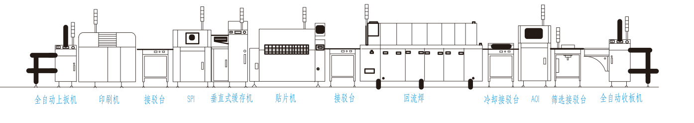 印刷機(jī)、 SPI、貼片機(jī)、AOI、回流焊、X-Ray等整條SMT生產(chǎn)線設(shè)備;