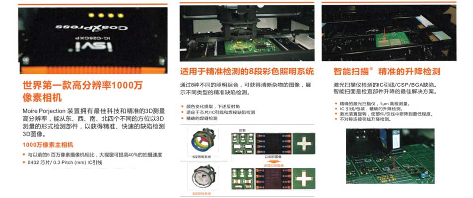 最小檢查零件:9.8微米0402 /01005(inch)/0.3pitch mm